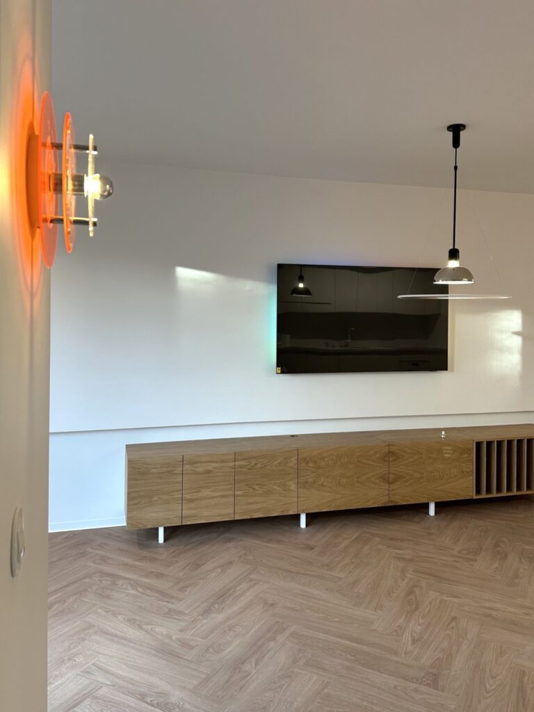 To nie było mieszkanie, które wystarczyło wykończyć. Zaczęliśmy od zmian, które dla wielu inwestorów są najtrudniejsze – ingerencji w układ. Wyburzenia i nowe ściany pozwoliły dopasować przestrzeń do realnego sposobu życia, a nie do tego, co zaplanował deweloper.